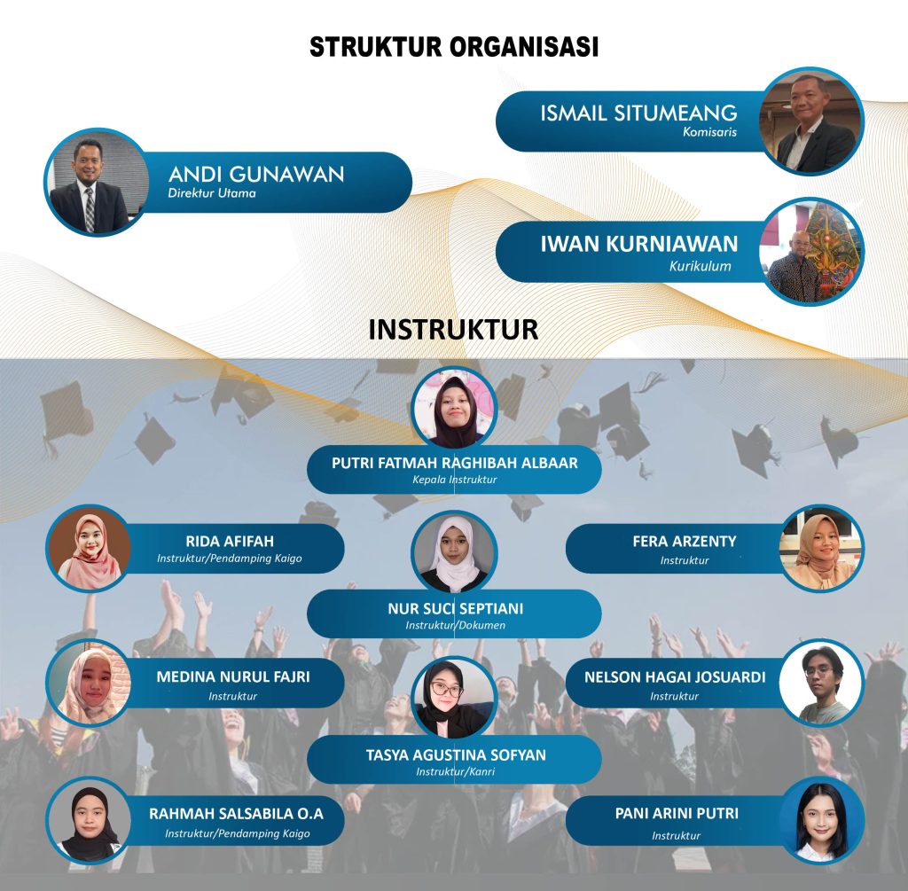 Dipimpin oleh tim manajemen berpengalaman serta instruktur bersertifikat, setiap divisi memiliki peran penting dalam mendukung misi kami mencetak sumber daya manusia unggul yang siap kerja di tingkat global.